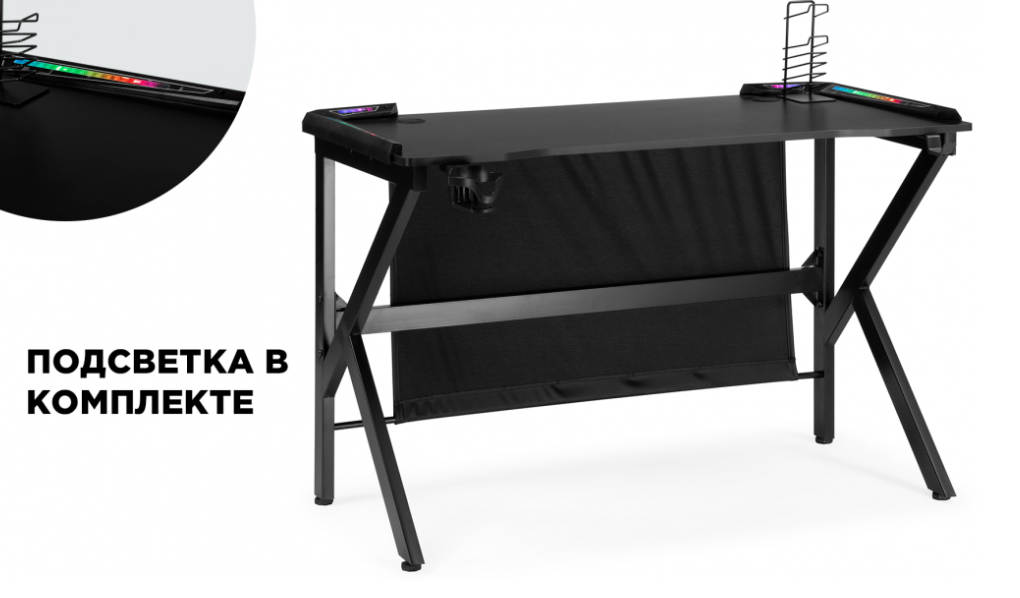 Стол позволяет разместить полноценный ПК и стопки документов. Woodville Master 2 оснащен подстаканником, крючком для наушников и универсальным держателем для телефона или планшета.