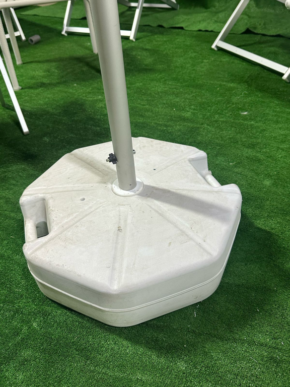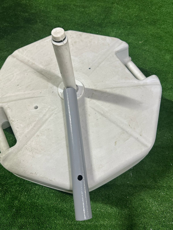 База утяжелительная на колесах Theumbrela Semsiye Evi Base Данный товар продается только в комплекте с зонтами! Утяжелительные базы не продаются по отдельности! Утяжелительная база для зонтов выполнена из пластика белого цвета и заполнена бетоном. Встроенные колеса обеспечивают мобильность. В комплекте идет втулка (переходник) длиной 295 мм.