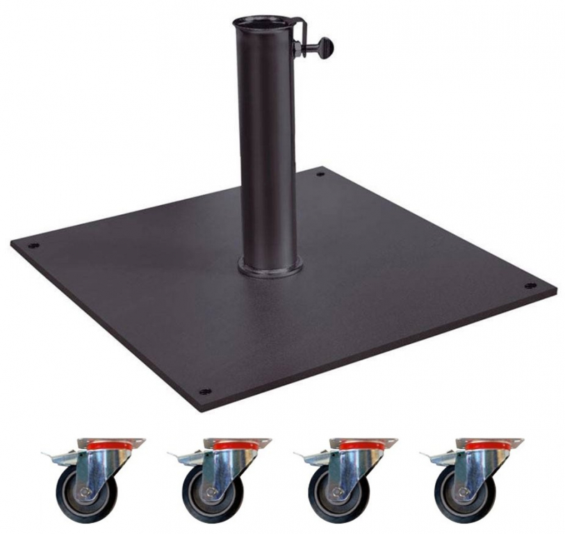 База для зонта с колесами Scolaro BF6666D/T55, антрацит Данный товар продается только в комплекте с зонтами! Утяжелительные базы и плиты не продаются по отдельности! База для зонта с колесами. Подходит для зонтов с центральной опорой. Утяжелительная база дополнена трубкой. BF6666D/T55 - Внутренний диаметр трубки 52 мм, внешний - 55 мм. Подходит для зонтов с диаметром опоры 47-50 мм.