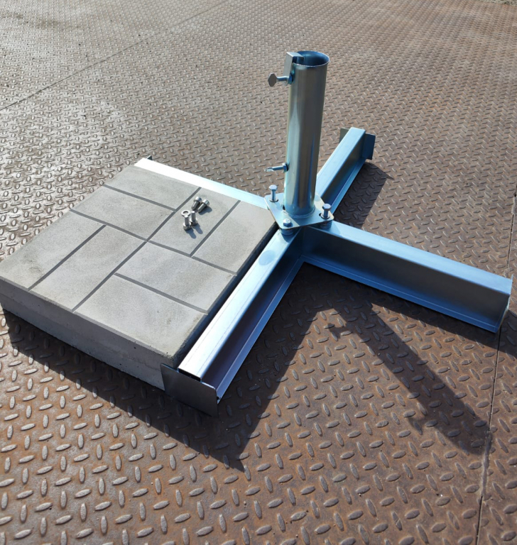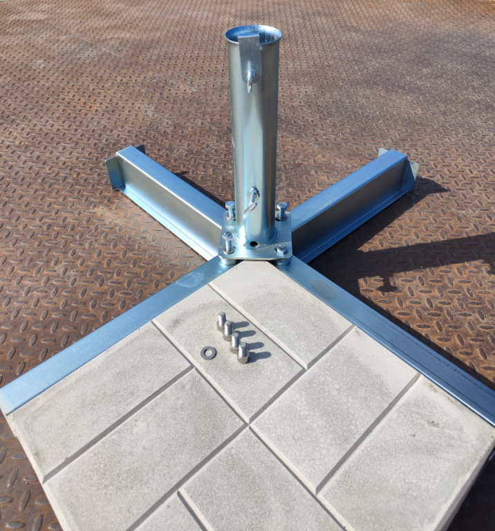 База утяжелительная для зонта Scolaro BQ8080ZS, стальной Данный товар продается только в комплекте с зонтами! Утяжелительные базы и плиты не продаются по отдельности! Доступна с трубками с BTT55 или BTT65. Трубка в комплекте. Комбинируется с цементными плитами, плиты приобретаются отдельно. Необходимо 4 цементные плиты 400х400 мм, для ветренных мест - 8 плит. Модель, представленная на сайте, укомплектована трубкой BTT65.