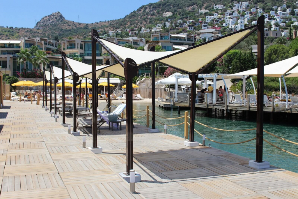 Навес квадратный Theumbrela Semsiye Evi Butterfly, бежевый НавесButterfly является эстетическим решением для клиентов, которые ищут недорогую, однако очень функциональную конструкцию. Архитектурный дизайн, благодаря своей асимметричной структуре, добавляет эстетического богатства пространству, в которомон используется. Навеслегко собирать и разбирать. Необходимые ключи поставляются в комплекте. Благодаря качественным материалам и гарантии на запасные части, Вы можете использовать его годами. Соединительное оборудование стальное, а опоры корпуса усилены алюминием.Благодаря джутовому полиэстеру навесможет использоваться даже в сильноветреную погоду. НавесButterfly с богатым архитектурным дизайном можно использовать в таких местах, как сады, кафе, рестораны и террасы. Дополнительным преимуществом его является то, что он прост в установке, а также имеет возможность сборки. Это альтернатива моделям садовых зонтов. Особенности: Алюминиевые вертикальные опоры с порошковым покрытием 100х100х2 мм. Стальные горизонтальные опоры с порошковым покрытием 40х40х2 мм. Стандартный цвет каркаса - коричневый (RAL 8016 brown). Тент выполнен из джутового полиэстера с 5-летней гарантией. Соединители выполнены из металла. Высокая ветроустойчивость. 4 мраморных утяжелителя 340х340х120 мм.