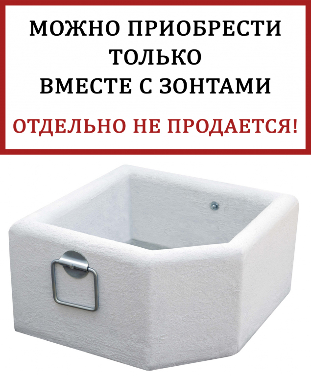 Декоративная ваза-утяжелитель для зонта Scolaro BV5050B, белый Данный товар продается только в комплекте с зонтами! Утяжелительные базы и плиты не продаются по отдельности! Декоративная ваза для вставки в базу для зонта. Материал - бетон, цвет - белый. Размер вазы - 500х500 мм, вес 80 кг. Подходит для стандартных металлических баз Scolaro, которые входят в комплект поставки зонтов с боковой опорой. Для одного зонта требуется минимум 2 вазы.