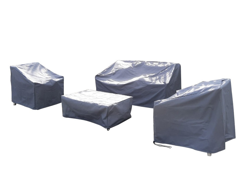 Чехлы для комплекта плетеной мебели Jura обеспечивают защиту от погодных воздействий во время хранения. Состав комплекта: Чехол для кресла, размер: 1000х850х750 мм - 2 шт. Чехол для дивана, размер: 1950х850х750 мм - 1 шт. Чехол для кофейного столика, размер: 900х900х350 мм - 1 шт. Чехол для бокового столика, размер: 450х450х450 мм - 1 шт. Особенности: Чехлы выполнены из полиэстера со слоями полиуретана для обеспечения водонепроницаемости. Цвет чехлов серый (199D-SV). Открыть инструкцию по уходу.Характеристики