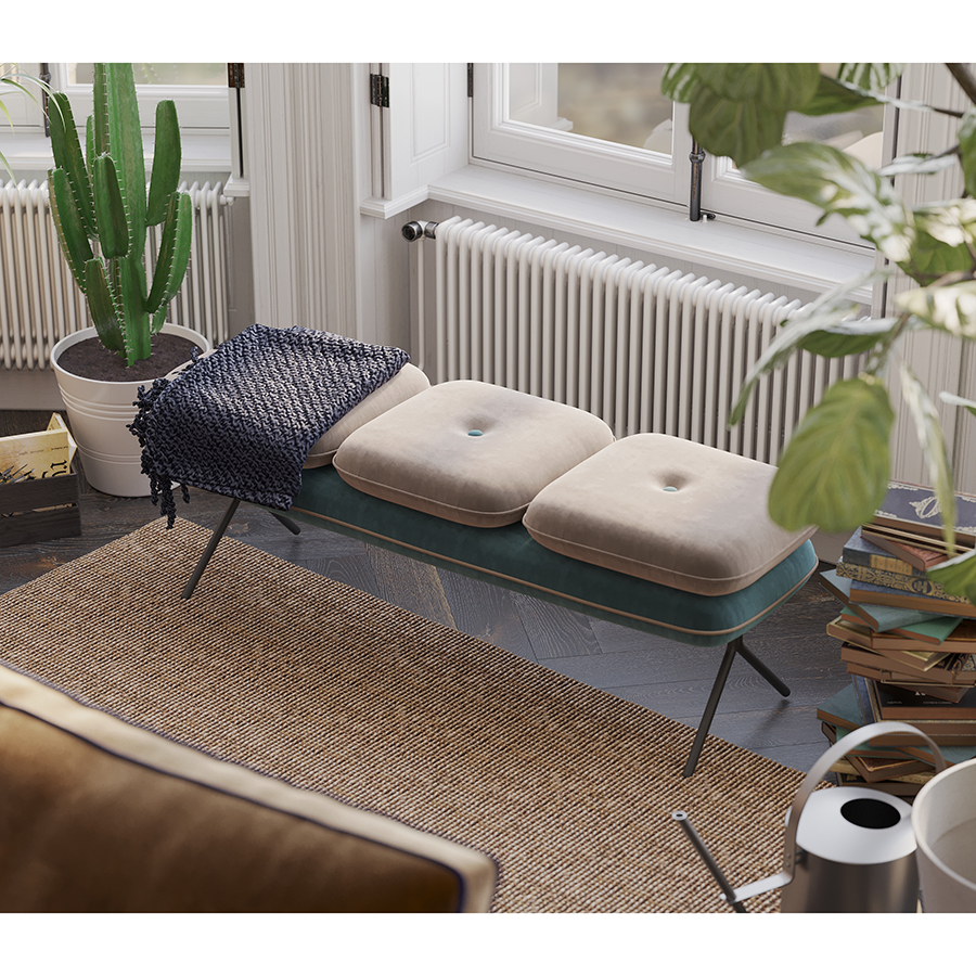 Банкетка Bergenson Bjorn Pea, велюр, бежевая/сине-зеленая
