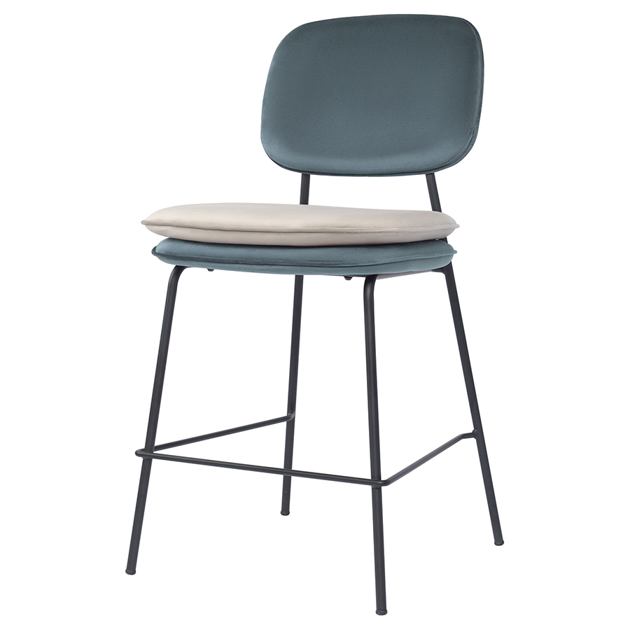 Стул полубарный Bergenson Bjorn Pea, велюр, сине-зеленый/бежевый