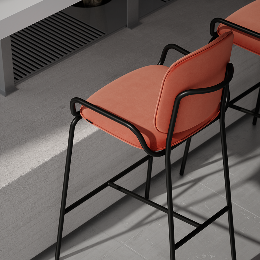 Коллекция Ror – это мебель с индивидуальным характером. Отправной точкой создания линейки стало динамичное движение, воплощенное в логотипе Олимпиады 80, где беговые дорожки образуют силуэт Спасской башни.Стул полубарный Double Frame имеет удобную посадку за счет высокой спинки и широкого основания. Ножки плавно переходят в подлокотники и в нижней части соединяются металлической рамой, которая служит подставкой для ног. Такое дизайнерское решение создает дополнительный комфорт во время сидения.