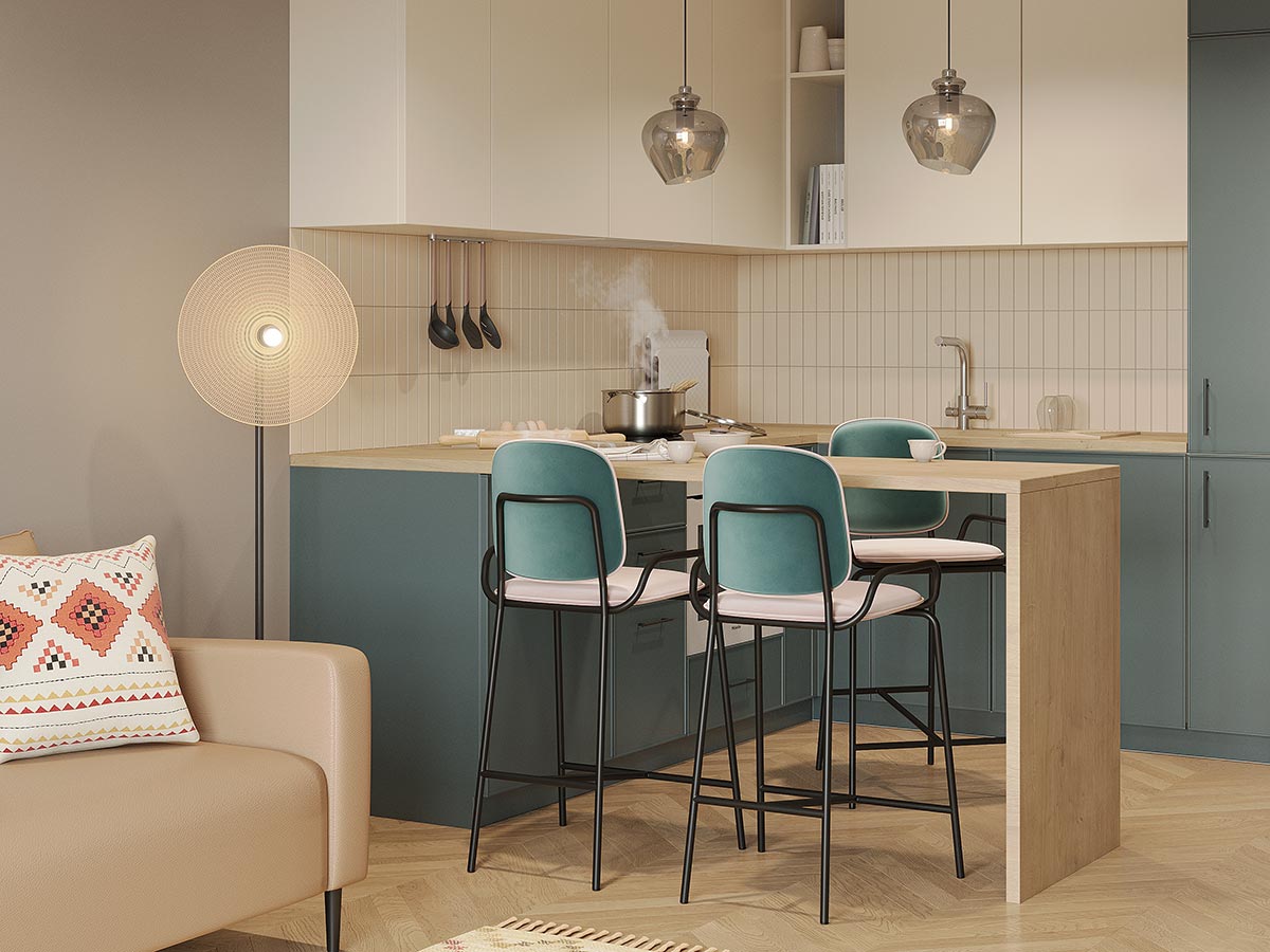 Стул полубарный LATITUDE Ror, 2 Frame, велюр, черный/зеленый/розовый