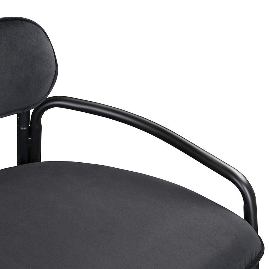 Стальное основание с порошковым покрытием делает конструкцию прочной и надежной, а мягкий велюр с бархатистой текстурой обеспечивает тактильный комфорт. Ткань обивки обладает высокими показателями износостойкости. Используемый в качестве наполнителя пенополиуретан отличается комфортной плотностью и жесткостью.