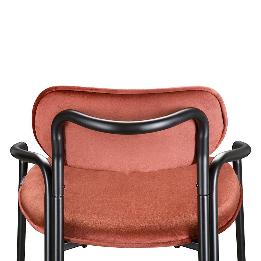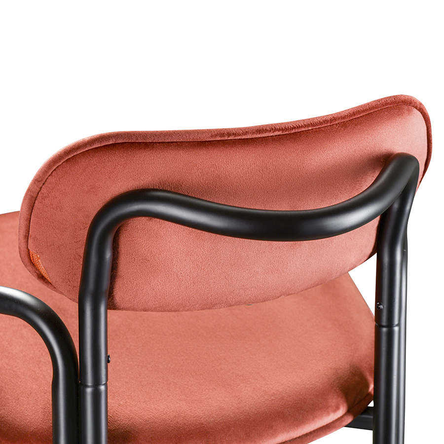 Стальное основание с порошковым покрытием делает конструкцию прочной и надежной, а мягкий велюр с бархатистой текстурой обеспечивает тактильный комфорт. Ткань обивки обладает высокими показателями износостойкости. Используемый в качестве наполнителя пенополиуретан отличается комфортной плотностью и жесткостью.