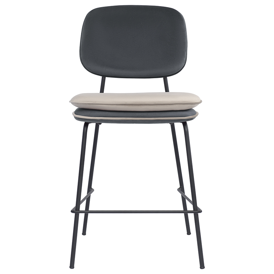 Стул полубарный с контрастным кантом Bergenson Bjorn Pea, велюр, темно-серый/бежевый