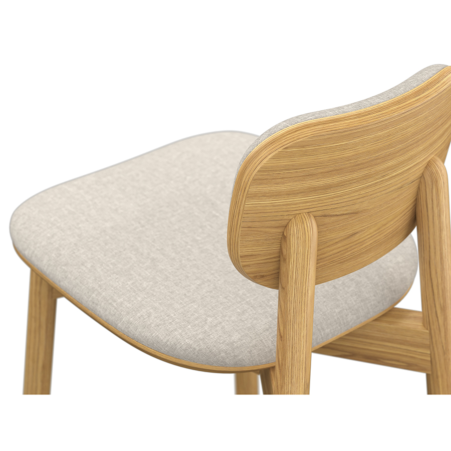 Материалы: массив ясеня, шпон ясеня, 100%, пенополиуретан, 100%, полиэстер. Размеры: 46х52х92 см. Высота сиденья: 64 см. Ширина сиденья: 43 см. Глубина сиденья: 41 см. Высота спинки: 30 см. Ширина спинки: 32 см. Высота подножки: 16 см. Максимальная нагрузка: 136 кг. Истираемость ткани по шкале Мартиндейла: 40000. Цвет: бежевый.
