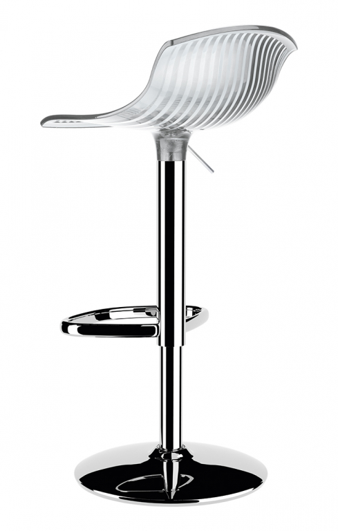Вращающийся барный стул Aria с регулируемой высотой при помощи механизмагазлифт, корпус которого выполнен из прозрачного перерабатываемого поликарбоната, а основание и колонна - из нержавеющей стали.Поликарбонат Makrolon® - чрезвычайно прочный, легкий материал, имеющий стеклянную прозрачностью и устойчивый к ударам даже при низких температурах. Барные стулья серии Aria с прозрачным сиденьем и спинкой станут отличным выбором для обстановки фуд-кортов, кафе, ресторанов и баров. Благодаря использованию высококачественных материалов они долгое время не теряют своего привлекательного внешнего вида, даже несмотря на активную эксплуатацию. Поворотный механизм и регулировка высоты обеспечивают дополнительный комфорт сидящему, а благодаря стальному каркасу, барные стулья Allegra устойчивы и выдерживают большие нагрузки. Особенности: изготовлен из высококачественного прозрачного поликарбоната; основание и колонна выполнены из нержавеющей стали; регулировка высоты: 730-930 мм; поворотный механизм; подходит для использования исключительно в помещении. Открыть технические характеристики. Информация по уходу: прозрачные стулья можно протирать тряпкой из микрофибры, допускается применение нейтрального мыльного раствора. Запрещается использовать спиртосодержащие или ацетоносодержащие (а также им подобные) средства.Характеристики