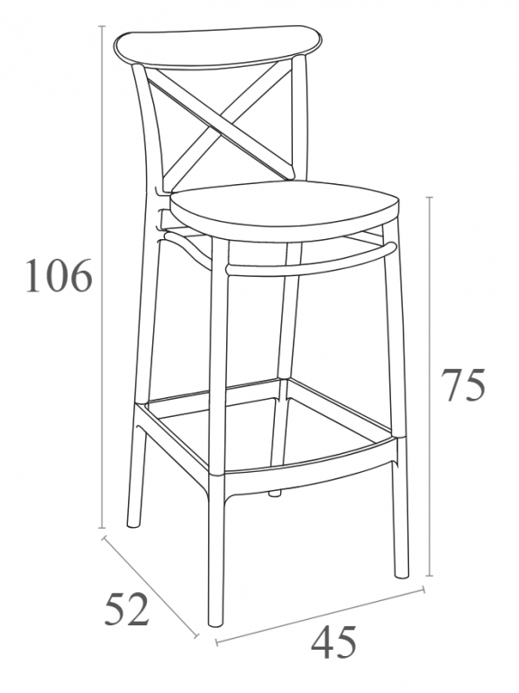 Барный стул Cross изготавливается из полипропилена, упрочненного стекловолокном, полученным с использованием новейшего поколения технологий формования пластмасс под давлением. Пластиковые барные стулья Cross станут отличным выбором для обстановки баров, фуд-кортов, кафе и ресторанов. Благодаря использованию высококачественных материалов, они долгое время не теряют своего привлекательного внешнего вида, даже несмотря на активную эксплуатацию. Отсутствие металлического каркаса и устойчивость к ультрафиолетовому воздействию обеспечивают использование пластиковых барных стульев Cross в том числе и на открытых площадках. Особенности: стул имеет символичный своему названию дизайн спинки с крестовиной; изготовлен из высококачественного полипропилена, армированного стекловолокном; не имеет металлического каркаса, не ржавеет, не поддается коррозии; устойчив к ультрафиолету и атмосферным осадкам, выдерживает минусовую температуру до 20 градусов; подходит для использования на открытом воздухе и в помещении; сертификат CATAS. Открыть технические характеристики. Открыть инструкцию по сборке.Характеристики