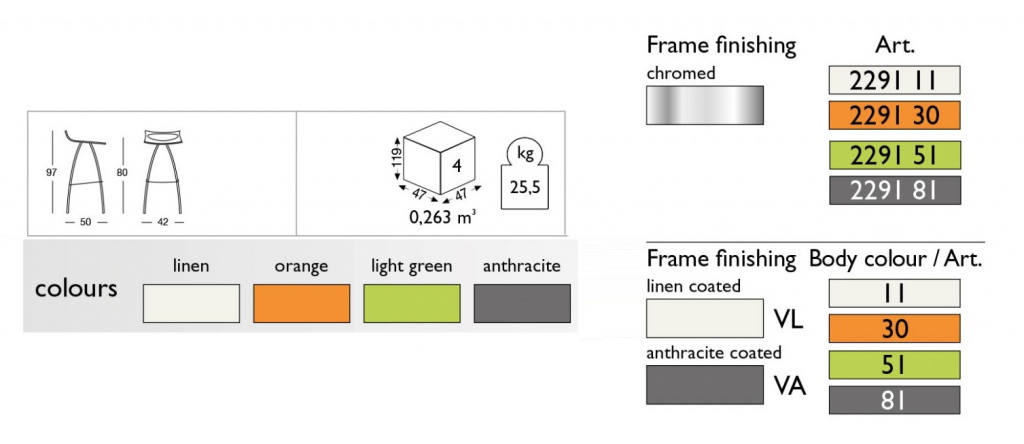 Diablito -этопластиковый барный стул от дизайнера Luisa Battaglia. Особенности: Каркас выполнен из стали диаметром 22 мм. Доступен вариант с хромированием или порошковым покрытием. Сиденье изготовлено изтехнополимера. Стул доступен в двух вариантах высоты и нескольких цветах. Данная модель подходит для использования во внутреннем интерьере кафе, ресторанов. Открыть технические характеристики. Цена на сайте указана за модель с окрашенным каркасом. Цены на другие модели Вы можете уточнить у менеджеров.Характеристики