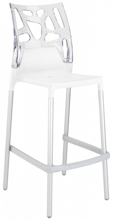 Стул пластиковый барный Papatya Ego-Rock Bar, сатинированный алюминий, белый, прозрачный