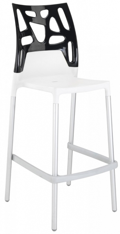 Стул пластиковый барный Papatya Ego-Rock Bar, сатинированный алюминий, белый, черный