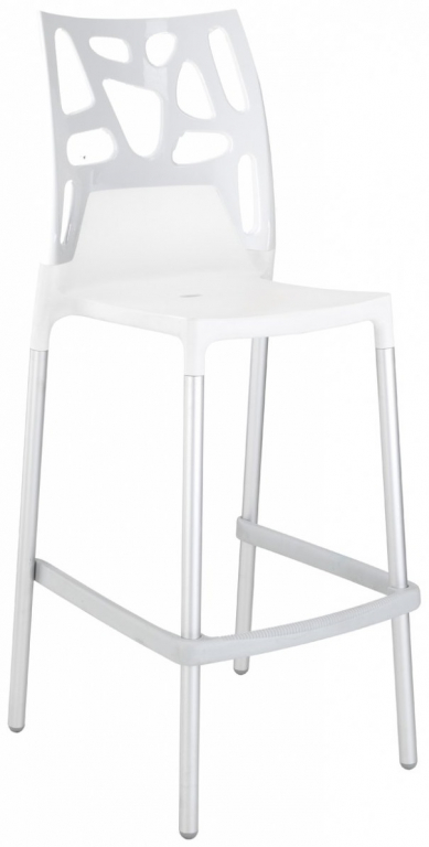 Стул пластиковый барный Papatya Ego-Rock Bar, сатинированный алюминий, белый