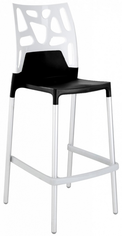 Стул пластиковый барный Papatya Ego-Rock Bar, сатинированный алюминий, черный матовый, белый