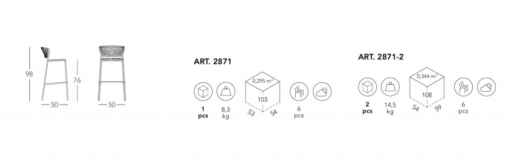 Барный стулLisa Filoс корпусом из морского канатаи стальным каркасом от дизайнераMarcello Ziliani. Это обязательный предмет мебели для открытых пространств, неформальный, но хорошо отделанный, выполненный в изысканном сочетании структуры и рамы. Стул дает легкую летнюю беззаботность барам и ресторанам вдоль моря. Морской канат, используемыйдля плетеных сиденья и спинки, является отличительным элементом барного стула Lisa Filò и делает его идеальным предметом мебели для современной и непринужденной обстановки как на открытом воздухе, так и в помещении. Доступный во многих вариантах отделки каркаса и цветов морского каната (100% перерабатываемый полиэстер), он идеально адаптируется к любому пространству. Особенности: Каркас выполнен из оцинкованной стальной трубы с полиэстеровым порошковымпокрытием диаметром 16мм.Варианты отделки каркаса: можно выбрать из палитры. Сиденье и спинка выполнены из морского каната - 100% перерабатываемогополиэстера, окрашенногов массе, нетоксичного, прочного и простого в уходе. Варианты цвета плетения: можно выбрать из палитры. Барные стульялегко штабелируются до 6 шт. для удобного хранения и транспортировки. Данная модель предназначена для использования на летних верандах, террасах, фудкортах, а такжево внутреннем интерьере баров, кафе, ресторанов. Посмотреть каталог отделоки обивок. Посмотреть технические характеристики. Обращаем ваше внимание, что каждый цвет каркаса сочетается только с определенными цветами плетения. При выборе цветовой комбинацииориентируйтесь на таблицу с палитрой, где указаны доступные варианты сочетаний.Характеристики