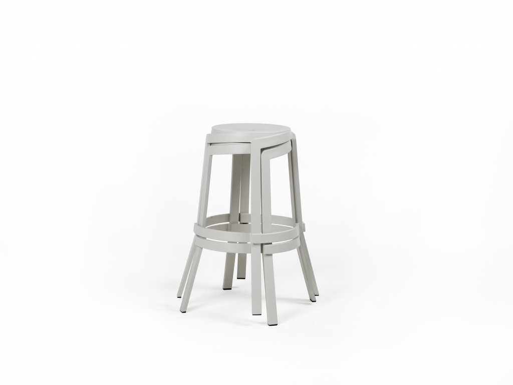 Дизайн: Raffaello Galiotto. На выставке Salone del Mobile 2022 в Милане Nardi представили новую коллекцию уличных пластиковых табуретов Stack. Высокий табурет Stack Maxi из переработанного стеклопластика отличается линейным дизайном и очень толстыми секциями, вдохновленными деревянными балками. Это особая смесь с несколькими полосами, гармонирующая с уникальным цветом Terra и грубой матовой текстурой с винтажным эффектом. Мебель создается с использованием 30% переработанного стеклопластика и 70% нового материала. Тщательно продуманный процесс производства исключает влияние вторичного сырья на качество продукции. Таким образом, Nardi не только предлагает долговечные и надежные изделия, но и вносят вклад в защиту окружающей среды, давая пластику вторую жизнь. Это шаг к устойчивому будущему, где экология и качество идут рука об руку. Stack Maxi имеет инновационный спиралевидный дизайн, который позволяет ставить один табурет поверх другого. Отверстие в центре сиденья облегчает его перемещение и позволяет воде стекать. Цвет и текстура являются результатом обширных исследований, проведенных компанией, чтобы придать регенерированному пластику привлекательный внешний вид, который особенно гармонирует с окружающей средой. Матовый гипсовый цвет Gesso - название, которое вызывает связь и уважение к природе регенерированного материала. Изделия из пластика Nardi отличаются эксклюзивной, приятной шероховатой фактурой. Наличие тонких не идеально однородных прожилок делает каждый предмет мебели уникальным и неповторимым, непохожим на все остальные. На выходе получается продукт с отличными физико-техническими характеристиками и чрезвычайно чистая и текстурированная эстетическая привлекательность, как у гипса («gesso»). Табурет не требует особого ухода, устойчив к атмосферным воздействиям и занимает мало места при хранении. Особенности: Конструкция выполнена из регенерированного стеклопластика, рожденного в рамках проекта Regeneration и полученного путем переработки полипропиленовой мебели. Выдерживает негативное воздействие окружающей среды (осадки, ультрафиолет). Модель окрашена в матовый элегантный цвет Gesso (гипс). Нескользящие накладки на ножках. Продукт протестирован в соответствии с CATAS. Открыть технические характеристики. Открыть инструкцию пользователя. Для уточнения всех возможных вариантов материала и цвета данного изделия обращайтесь к нашим менеджерам.Характеристики
