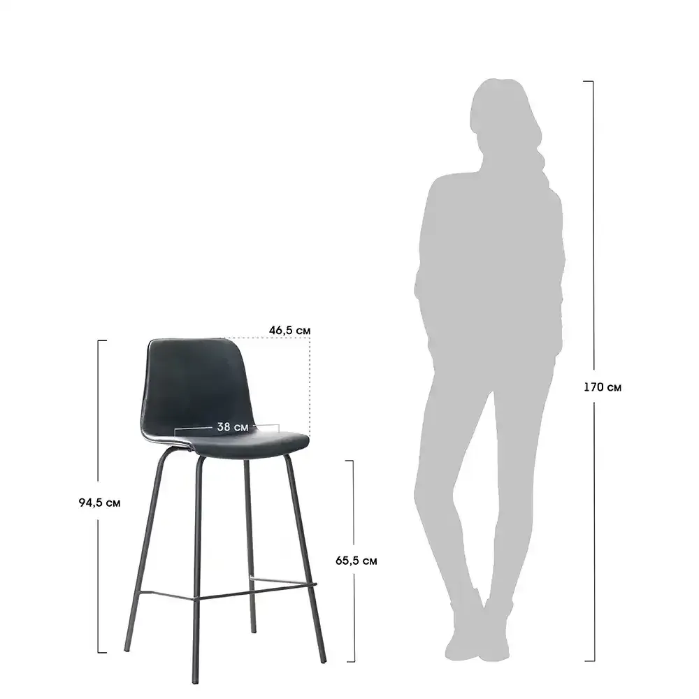 Материал: экокожа, металл, пенополиуретан, пластик. Материал каркаса: металл, пластик. Материал наполнителя: пенополиуретан. Материал обивки: экокожа. Максимальная нагрузка: 150кг Размер:38х46,5х94,5см. Высота сиденья: 64,5cм. Глубина сиденья: 34см Вес: 5,3кгХарактеристики