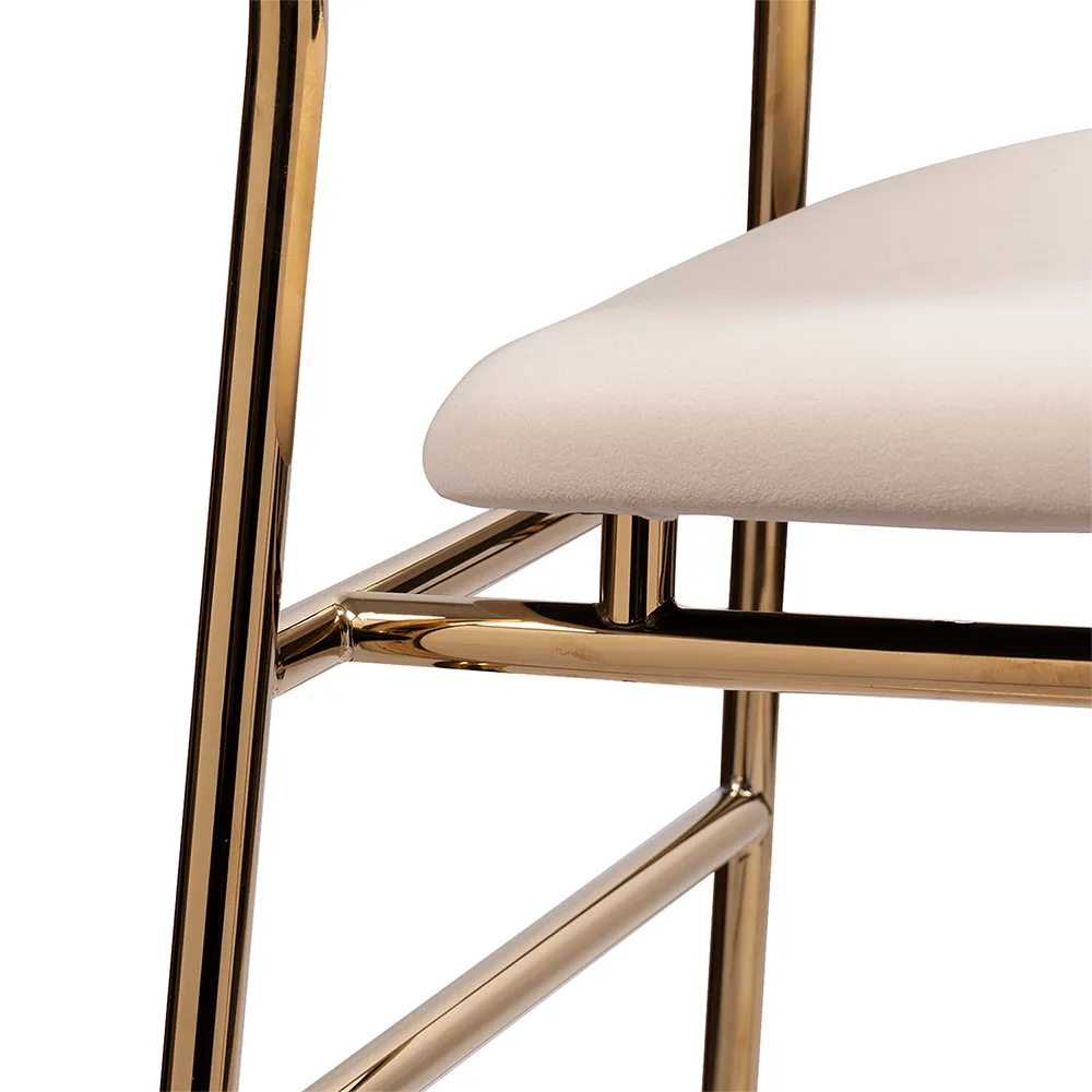 Ножки стула изготовлены из полированной нержавеющей стали с покрытием из нитрида титана, что создаёт эффект натурального золота и придаёт изделию роскошный вид.