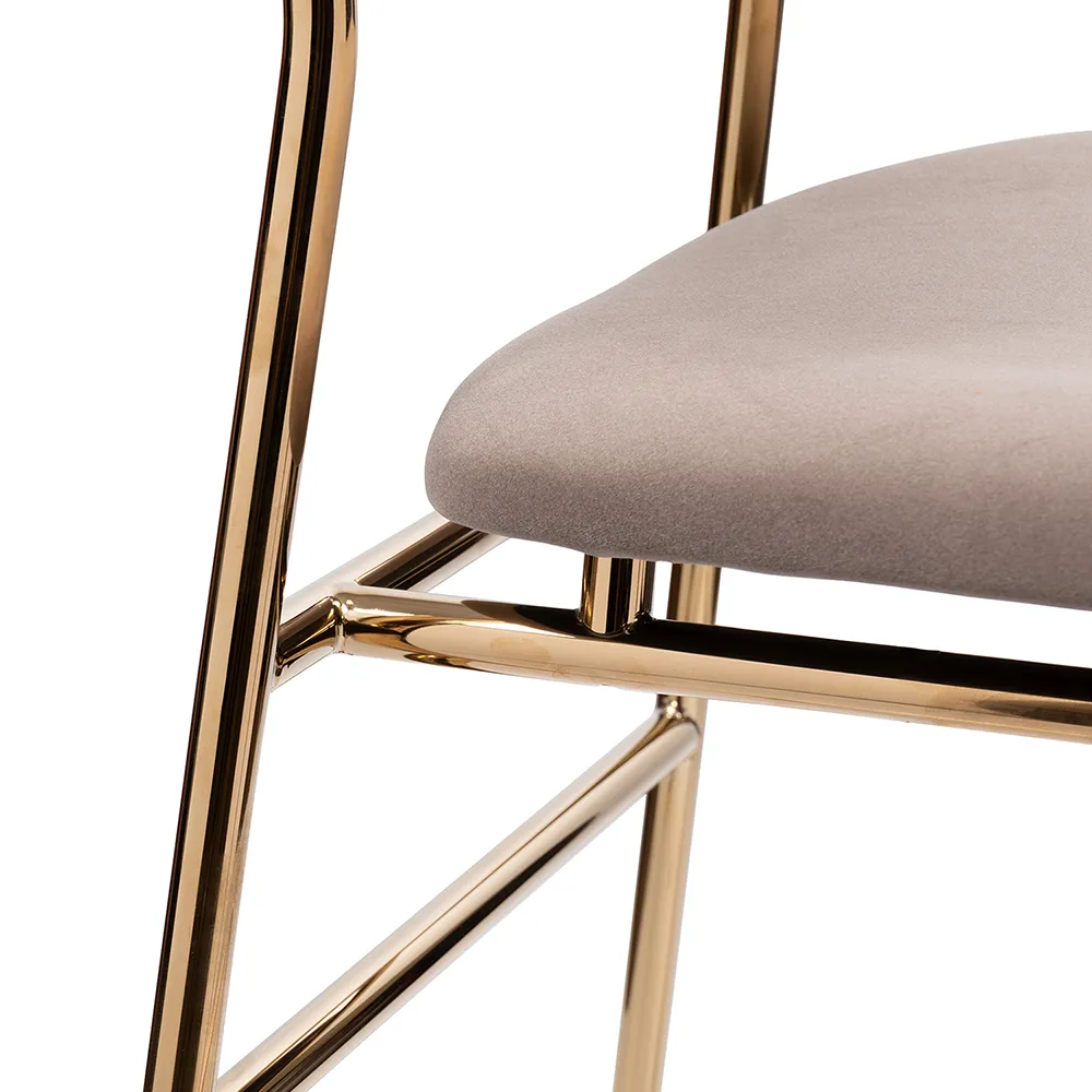 Ножки стула изготовлены из полированной нержавеющей стали с покрытием из нитрида титана, что создаёт эффект натурального золота и придаёт изделию роскошный вид.