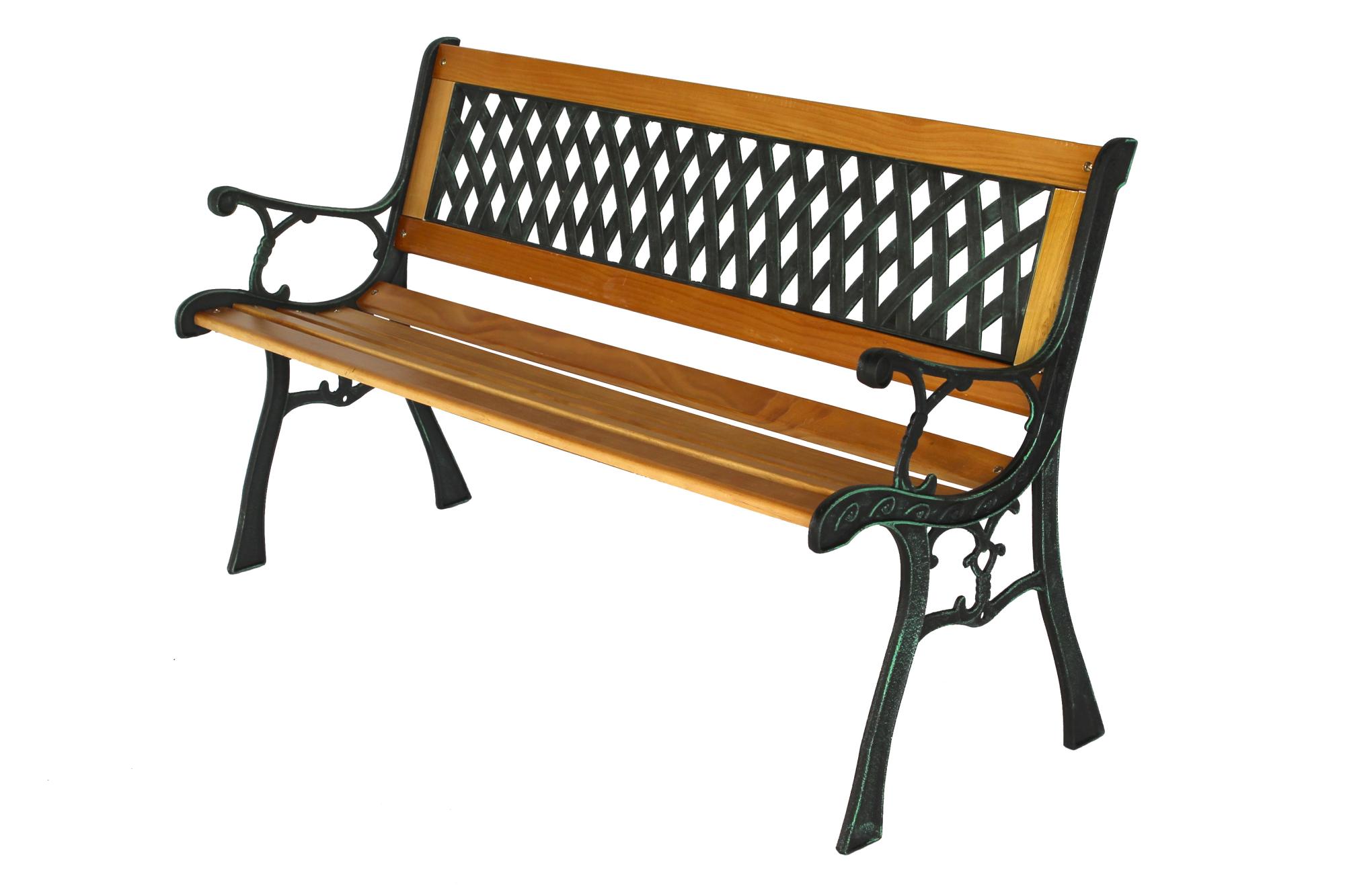 Габариты изделия (Ш/ГхДхВ) : 52х125х74 Материал каркаса : чугун Материал поверхности : дерево Дополнительно : чугунное литьё,узор на спинке-пластик, натуральное дерево, сосна 1-го сорта Страна производства : КИТАЙХарактеристики