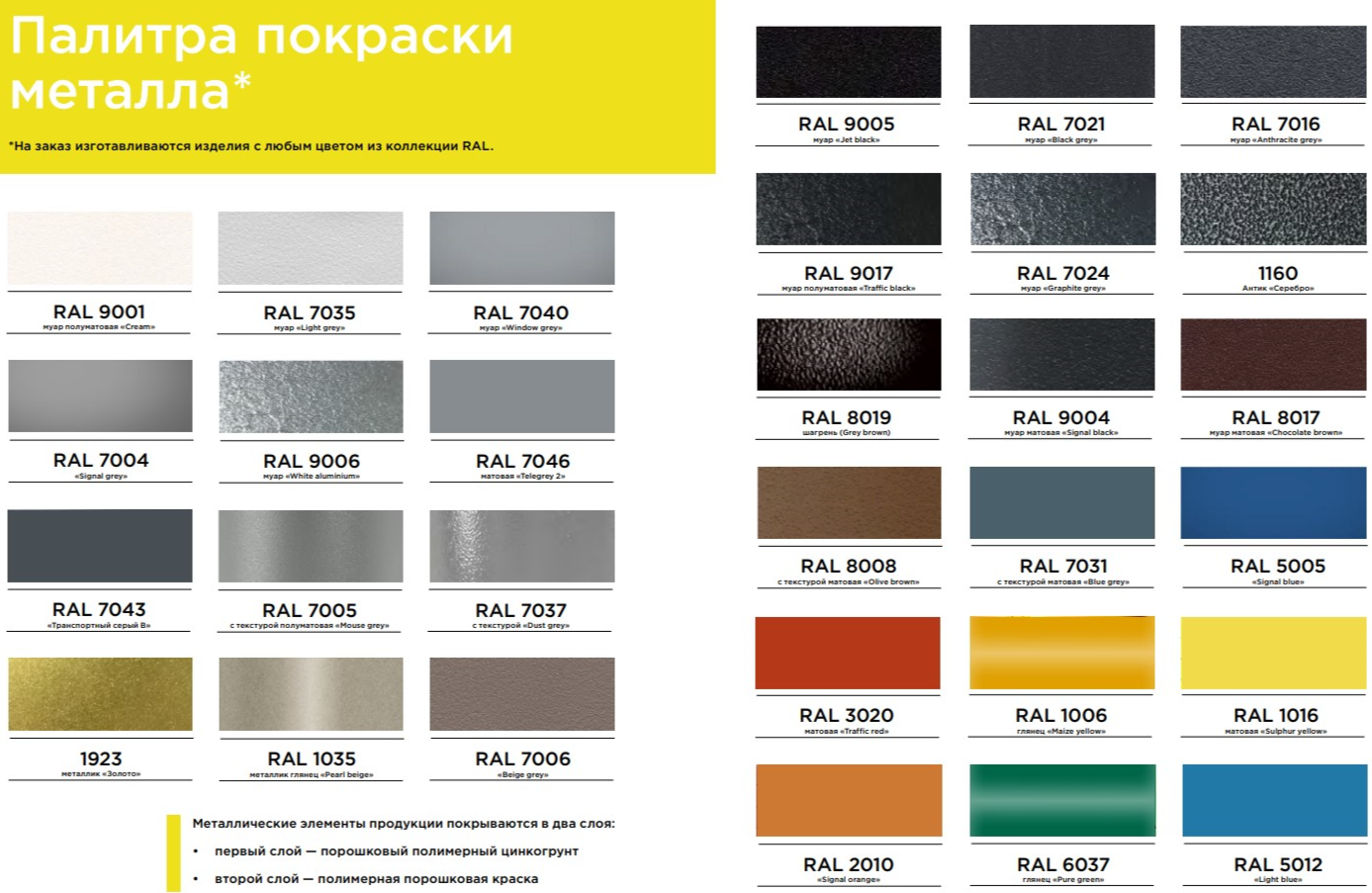 Фурнитура: Оцинкованная. Возможность выбора цвета фурнитуры по каталогу RAL. Стандартный цвет (по умолчанию) - серебристый. Возможность использования потайной/скрытой фурнитуры.