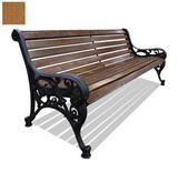 Прочность и комфортабельность скамейки данной модели обеспечены использованием брусьев ангарской сосны или лиственницы, крупными, близко расположенными друг к другу лагами, удобной спинкой и подлокотниками, на которые можно облокотиться. Выполнены опоры из литого чугуна, не подвергающегося коррозийным процессам. Поверхность лаг, подлокотников в и ножек покрыта полимерными красками и лаками, которые не поддаются воздействию влаги, УФ-лучей, перепадов температур. Отделочные материалы безопасны для здоровья и окружающей среды, это подтверждено наличием свидетельства ЕврАзЭС.