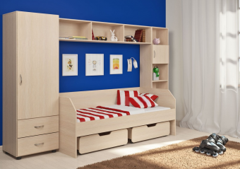 Детская стенка Л-№1 подойдет как для девочек , так и для мальчиков. Десять вариантов расцветок на любой вкус. В состав стенки входят: Kровать детская Л-13 - Классическая детская кровать со спальным местом 1900х800.Удобно заправлять кровать, ребенку легко забираться и слезать. Боковые бортики и мягкий противоударный кант дают дополнительную защиту для ребенка. Aнтресоль Л-02 - Глубокая, вместительная полка-антресоль с тремя равными секциями замечательно подходит для упорядоченного хранения вещей. Пенал Л-01 - Компактный одностворчатый пенал со штангой для «плечиков» и полкой для головных уборов. Пенал внизу оборудован двумя выкатными ящиками. Два выкатных ящика. Стеллаж Л-01 - Стеллаж с пятью полками позволит хранить в открытом доступе необходимые предметы разной величины. Вторая сверху полка оборудована дверкой. Уникальное сочетание цены и качества.На всех цветных фасадах светло-бежевая кромка. По Вашему выбору комплект может быть собран как на левую, так и на правую сторону.Характеристики