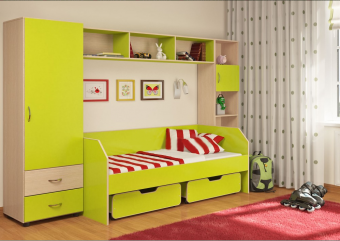 Вы можете купить Детская стенка КарИВи Л-№1 Дуб Молочный Лайм оптом в нашем магазине, предложим цену с оптовой скидкой.