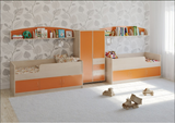 Вы можете купить Детская стенка КарИВи Л-№19 Дуб Молочный Оранжевый оптом в нашем магазине, предложим цену с оптовой скидкой.