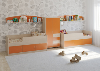 Детская стенкаЛ-№19 - стильный и компактный комплект для двоих детей. Состав комплекта: Две кроватиЛ-35со спальным местом1600х700. Кровать имеет высокийзащитный бортики в то же время низкий проём.Ребенку легко залезать и слезать,а во время сна он надежно защищенбортиком с максимальной высотой 29см. Под спальным местом располагаются3 полки с дверцами.Вместительные полки отлично подойдут для хранения постельного белья,вещей,принадлежностей,игрушек.Дверцы формируют законченный образ,помогая содержать вещи в порядке и защищая содержимое от пыли. Элегантный двустворчатый шкаф,в котором есть всё необходимое.Шкаф Л-03условно делится на три зоны - одна зона с двумя полками и со штангой для «плечиков»,вторая с тремя полками,и третья - четыре выкатных ящика. Таким образом,Вы сможете распределить вшкафу Л-03любые вещи и максимально удобно организовать хранение.В качестве опоры служат четыре ножки,снижающие вред для напольного покрытия при перестановке. Две полочки Л-09,являющиеся в то же время и декоративными элементами.Стильный модульразделен на три секции и имеет боковые ограничители,здесь удобно располагать приятные мелочи, книжки на ночь и другие вещи. Мягкий противоударный кант– дополнительная безопасность для детей.Характеристики