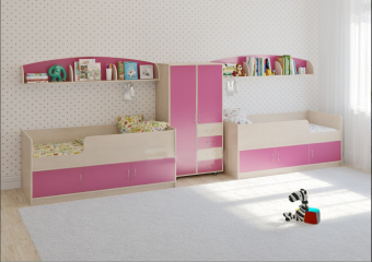 Детская стенкаЛ-№19 - стильный и компактный комплект для двоих детей. Состав комплекта: Две кроватиЛ-35со спальным местом1600х700. Кровать имеет высокийзащитный бортики в то же время низкий проём.Ребенку легко залезать и слезать,а во время сна он надежно защищенбортиком с максимальной высотой 29см. Под спальным местом располагаются3 полки с дверцами.Вместительные полки отлично подойдут для хранения постельного белья,вещей,принадлежностей,игрушек.Дверцы формируют законченный образ,помогая содержать вещи в порядке и защищая содержимое от пыли. Элегантный двустворчатый шкаф,в котором есть всё необходимое.Шкаф Л-03условно делится на три зоны - одна зона с двумя полками и со штангой для «плечиков»,вторая с тремя полками,и третья - четыре выкатных ящика. Таким образом,Вы сможете распределить вшкафу Л-03любые вещи и максимально удобно организовать хранение.В качестве опоры служат четыре ножки,снижающие вред для напольного покрытия при перестановке. Две полочки Л-09,являющиеся в то же время и декоративными элементами.Стильный модульразделен на три секции и имеет боковые ограничители,здесь удобно располагать приятные мелочи, книжки на ночь и другие вещи. Мягкий противоударный кант– дополнительная безопасность для детей.Характеристики