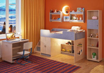 Детская стенка Л-№5 – компактно и очень вместительно. Десять вариантов расцветок на любой вкус! В состав стенки входят: Кровать детская Л-2 с игровой зоной , имеется встроенная тумба и стеллаж для организации хранения вещей, световое окно даёт дополнительное освещение, мягкий противоударный кант – дополнительная безопасность для детей!На всех цветных фасадах светло-бежевая кромка. Лестница угловая ЛУ-02 из трех ступенек одновременно выполняет функцию стеллажа. В набор включены фасады, таким образом, получаются полноценные полки с дверками. Практичный стол Л-02 с колёсиками легко перемещается по полу. Отлично помещается под спальным местом кровати, задвигается и выдвигается. На боковом борту присутствует ручка для более комфортного перемещения столика. Конструкция стола позволяет малышам играть в «домик», а две дополнительные внутренние полочки с бортиками могут служить как для хранения канцелярских принадлежностей, так и для хранения игрушек. Две оригинальных двухъярусных полки Л-02 подойдут для хранения как небольших, так и высоких предметов. Дополнительный бортик защищает содержимое полки от падений. Стеллаж Л-01 с пятью полками позволит хранить в открытом доступе необходимые предметы разной величины. Вторая сверху полка оборудована дверкой. Благодаря компактным габаритам , стеллаж поместится даже в узкую нишу. Детская стенка занимает мало места , но имеет много мест для хранения! По вашему выбору комплект может быть собран как на левую, так и на правую сторону.Характеристики