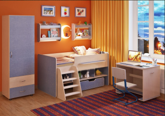 Кровать детская Л-6 Удобно заправлять кровать, ребенку легко забираться и слезать, надёжно и практично. Лестница из массива сосны – широкая, устойчивая и надёжная.Под спальным местом располагаются три вместительных ниши для игрушек или иных принадлежностей.В комплект входит ящик ,который удобно выкатывается и закатывается,так как оборудован колёсиками.Полка на боковом бортике для хранения мелочей. Практичный стол Л-02 с колёсиками легко перемещается по полу.Отлично помещается под спальным местом кровати,задвигается и выдвигается.На боковом борту присутствует ручка для более комфортного перемещения столика.Конструкция стола позволяет малышам играть в «домик»,а две дополнительные внутренние полочки с бортиками могут служить как для хранения канцелярских принадлежностей,так и для хранения игрушек. Компактный одностворчатый пенал Л-01 отлично впишется в узкое пространство.Внутри пенала расположена штанга для «плечиков» и полка для головных уборов.Внизу пенал оборудован двумя выкатными ящиками. Полка Л-01 - Минималистский дизайн, закругленные края и мягкий противоударный кант – лучшее дополнение кровати-чердака. Полка Л-02 - Оригинальная двухъярусная полка подойдет для хранения как небольших, так и высоких предметов.Дополнительный бортик защищает содержимое полки от падений. Модель универсальна - сторона определяется при сборке. Матрасы в комплект не входят - приобретаются отдельно.Характеристики