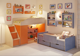 Детская стенкаЛ-№13 – уют и порядок для двоих детей. В состав стенки входят: Kровать чердак Л-11- Внизу расположенаигровая зонасо стеллажом для игрушек.В кровать встроенвместительныйшкафс четырьмя полками и штангой для хранения одежды,белья,игрушек или иных вещей. Угловая лестница-стеллаж ЛУ-10из четырех ступенек оборудована фасадами,поэтому стеллаж состоит из трёх полноценных полок с дверками. Kровать детская Л-14с приставным бортом.Удобно заправлять кровать.Боковые бортики и мягкий противоударный кантдают дополнительную защиту для ребенка. Ящик выкатной Л-01(2шт) - Два ящика идеально помещаются под кроватьЛ-14,удобно выкатываются и закатываются,так как оборудованы колёсиками. Полка Л-01- Минималистский дизайн,закругленные края и мягкий противоударный кант – лучшее дополнение кровати-чердака. Полка Л-02- Оригинальная двухъярусная полка подойдет для хранения как небольших,так и высоких предметов.Дополнительный бортикзащищает содержимое полки от падений. Полка Л-03(2 шт) -Две полки с тремя ярусами– отличное решение для хранения множества вещей.Хранимые предметы располагаются на стене,поэтомупространство для хранения увеличивается без ущерба для свободной площади.Каждый ярус оборудован бортиком,который защищает содержимое полки от падений. Модель универсальна - сторона определяется при сборке. Матрасы в комплект не входят - приобретаются отдельно.Характеристики