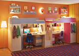 Детская комната Л-14 – лучшее решение для двоих детей! Две кровати Л-4(1900х800) с большим спальным местом 1900х800. У каждого ребенка своя учебная зона со столомпод спальным местом - возможности для письменных работ. В учебной зоне также располагаетсяполка,отлично подходящая для хранения книг и канцелярии. Встроенный угловой шкаф для храненияодежды,белья,игрушек или иных вещей. Четыреглубоких полоки позволяют удобно расположить и рассортировать вещи,а на штангу отлично помещаются вещи на вешалках-«плечиках». Тумба Л-01для хранения всех школьных принадлежностей. Высокая четырехступенчатая угловая лестница,одновременно выполняющая функцию стеллажа. В комплект входят фасады,в результате получаются полноценные полки с дверками как дополнительные места для хранения. Модель универсальна - сторона определяется при сборке. Матрасы в комплект не входят - приобретаются отдельно.Характеристики