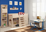 Детская комната Л-2 – функциональный комплекс для небольшой детской комнаты. Кровать имеет спальное место размером 160х80 см. Небольшая ниша с полкой под кроватью позволяет заполнить ее габаритными игрушками или применять в детских играх. Встроенный шкаф позволит аккуратно хранить одежду и белье ребенка.Невысокая угловая лестница из трех ступенек одновременно выполняет функцию вместительного стеллажа благодаря набору фасадов. Предусмотрено световое окно для дополнительного освещения игровой зоны в нише.Боковые бортики и мягкий кант, которым обработаны детали мебели, обеспечат безопасность при пользовании. Комплектация: Кровать 1648×834×1090 мм Лестница прямая 462×280×790 мм, ЛП-12 Полка 800×156×144 мм, Л-01 Стеллаж 450×296×1845 мм, Л-01 Модель универсальна - сторона определяется при сборке. На всех цветных фасадах светло-бежевая кромка. Матрасы в комплект не входят - приобретаются отдельно.Характеристики