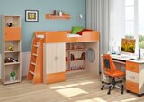 Детская комната Л-3 подойдёт как для мальчика, так и для девочки. В состав комнаты входят: - Кровать-чердак Л-3 со шкафом. В игровой зоне располагается стеллаж для игрушек, а внизу шкафа – выкатной ящик. - лестница прямая ЛП-11 из массива сосны удобная и надежная. - стол Л-01 - удобный письменный стол для занятий оборудован колёсиками, имеет три выкатных ящика для хранения принадлежностей, а также есть отсек для системного блока и выкатная полка для клавиатуры. - выкатная полка для клавиатуры. - полка Л-01 с закругленными краями - стеллаж Л-01. Стеллаж с пятью полками позволит хранить в открытом доступе необходимые предметы разной величины. Вторая сверху полка оборудована дверкой. Модель универсальна - сторона определяется при сборке. Матрасы в комплект не входят - приобретаются отдельно.Характеристики