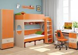 Г отовая комната для Вашего ребенка, которая совмещает в себе спальное место, вместительное место для одежды, выдвижной стол и игровую зону. Большое количество оттенков помогут подобрать мебель по вкусу ребенку и интерьеру комнаты, а большое разнообразие комплектаций и размеров поможет вписать детскую комнату даже в любую малогабаритную квартиру. Кровать детская двухъярусная Л-7 – классическая двухъярусная кровать с двумя параллельными кроватями, трехсекционной полкой, двумя вместительными ящиками и световым окном. Лестница прямая ЛП-04 из массива сосны – устойчивая и надёжная. Стол Л-01 - удобный письменный стол для занятий оборудован колёсиками, имеет три выкатных ящика для хранения принадлежностей, а также есть отсек для системного блока компьютера и выкатная полка для клавиатуры. пенал Л-01. Компактный одностворчатый пенал со штангой для «плечиков» и полкой для головных уборов. полка Л-01 – небольшая удобная полочка с закругленными краями Модель универсальна - сторона определяется при сборке. Матрасы в комплект не входят - приобретаются отдельно.Характеристики