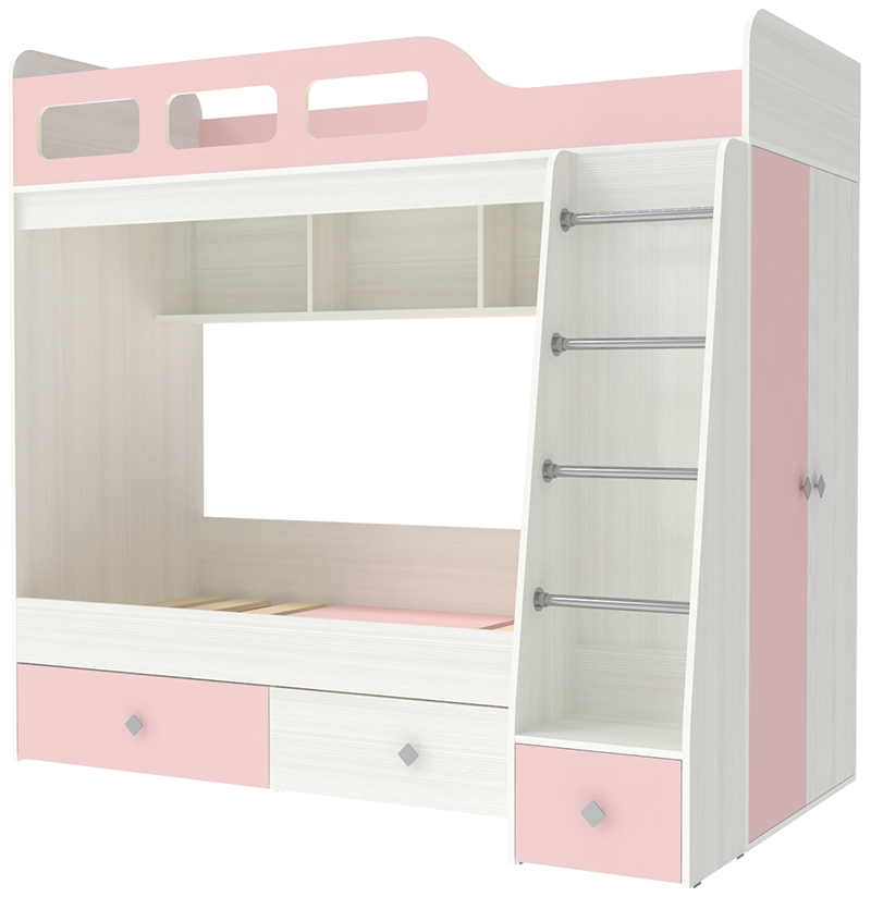Двухъярусная кровать Астра 3 Белое Дерево Розовый