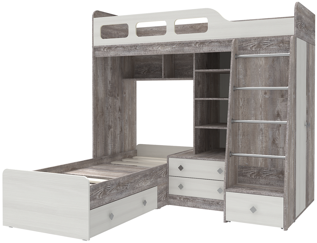 Вы можете купить Двухъярусная кровать КарИВи Астра 4 Бетон Белое Дерево оптом в нашем магазине, предложим цену с оптовой скидкой.