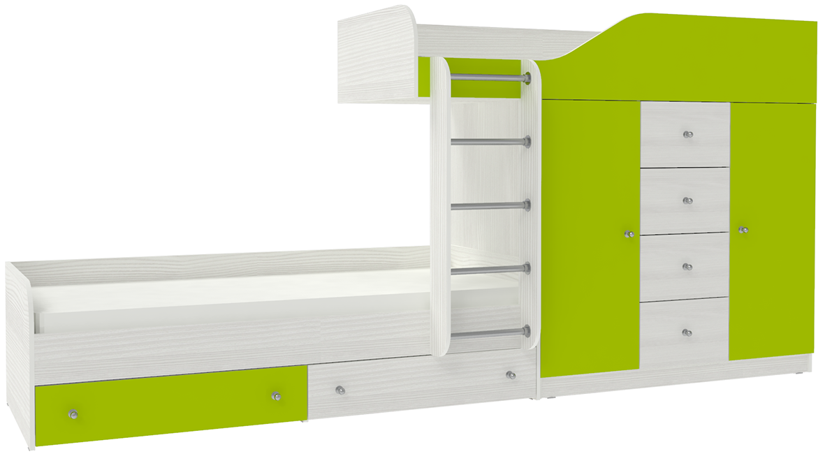 Двухъярусная кровать Астра 6 Белое Дерево Лайм