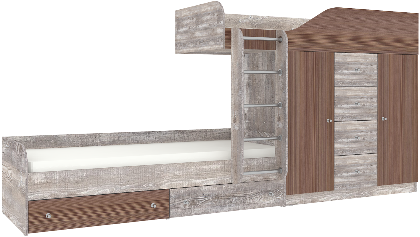 Неординарная и яркая двухъярусная кровать Астра 6 создана специально для того, чтобы стать стильным, функциональным элементом мебели для детской комнаты, которая рассчитана для двоих детей. Конструкция делится на два яруса, но благодаря необычному дизайнерскому решению ни одно из спальных мест не находится в тени другого. Верхний ярус оснащен специальным прочным защитным бортом по периметру для безопасного сна ребенка. Второе спальное место находится немного впереди, пространство под верхней кроватью занимает комод с выдвижными ящиками и два одностворчатых шкафа. На уровне пола также можно найти несколько вместительных ящиков. Модель универсальна - сторона определяется при сборке. Матрасы в комплект не входят - приобретаются отдельно.Характеристики