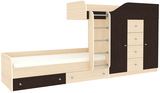 Неординарная и яркая двухъярусная кровать Астра 6 создана специально для того, чтобы стать стильным, функциональным элементом мебели для детской комнаты, которая рассчитана для двоих детей. Конструкция делится на два яруса, но благодаря необычному дизайнерскому решению ни одно из спальных мест не находится в тени другого. Верхний ярус оснащен специальным прочным защитным бортом по периметру для безопасного сна ребенка. Второе спальное место находится немного впереди, пространство под верхней кроватью занимает комод с выдвижными ящиками и два одностворчатых шкафа. На уровне пола также можно найти несколько вместительных ящиков. Модель универсальна - сторона определяется при сборке. Матрасы в комплект не входят - приобретаются отдельно.Характеристики