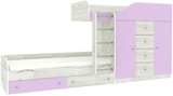 Неординарная и яркая двухъярусная кровать Астра 6 создана специально для того, чтобы стать стильным, функциональным элементом мебели для детской комнаты, которая рассчитана для двоих детей. Конструкция делится на два яруса, но благодаря необычному дизайнерскому решению ни одно из спальных мест не находится в тени другого. Верхний ярус оснащен специальным прочным защитным бортом по периметру для безопасного сна ребенка. Второе спальное место находится немного впереди, пространство под верхней кроватью занимает комод с выдвижными ящиками и два одностворчатых шкафа. На уровне пола также можно найти несколько вместительных ящиков. Модель универсальна - сторона определяется при сборке. Матрасы в комплект не входят - приобретаются отдельно.Характеристики