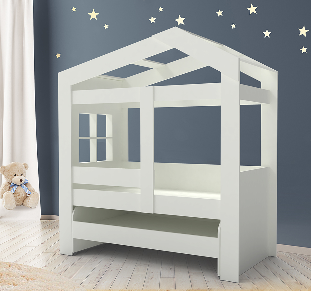 Вы можете купить Двухъярусная Кровать КарИВи Домик Сказка ДС-36.1 + ДС-36.2 Белый Белый оптом в нашем магазине, предложим цену с оптовой скидкой.