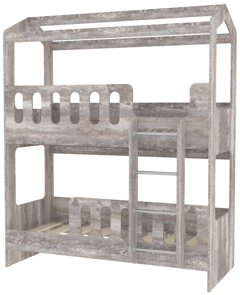 Двухъярусная кровать Домик Сказка позволит создать уютную детскую спальню для двоих детей, не перегрузив ее при этом мебелью. Преимуществом такой кровати является не только компактный размер, но и одинаково комфортное спальное место для каждого ребенка. Подъем на верх осуществляется по удобной приставной лесенке, а сами кровати оснащены высокими бортиками, обеспечивающими безопасность. Конструкция сделана из экологически чистой ЛДСП толщиной 16 см, что делает ее прочной и устойчивой. В основаниях матраца на верхнем ярусе используется лист ЛДСП, на нижнем - реечное дно для придания большего воздухообмена. Цвет кромки на цветных деталях - светло-бежевый. Выдвижной ящик, Тумба-лестница ДС-18 и матрацы приобретаются ДОПОЛНИТЕЛЬНО .Характеристики